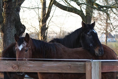 ![]() Unsere Oldies ![]() Nach ihrer erfolgreichen Turnierkarriere leben Little Diamond und Bolero auch weiterhin bei uns, die beiden genießen ihren Lebensabend. Unseren Oldies steht ein Offenstall mit angrenzendem Paddok zur Verfügung. Zur Winterbeschäftigung der beiden gehört es, unseren Absetzern, die im Winter direkt neben den beiden stehen, zu erklären, dass man es im Leben etwas ruhiger angehen lassen kann. Little Diamond und Bolero sind die besten Freunde und man kann sie sich als die guten, erfahrenen und ruhigen Seelen auf unserem Hof nicht mehr wegdenken.
